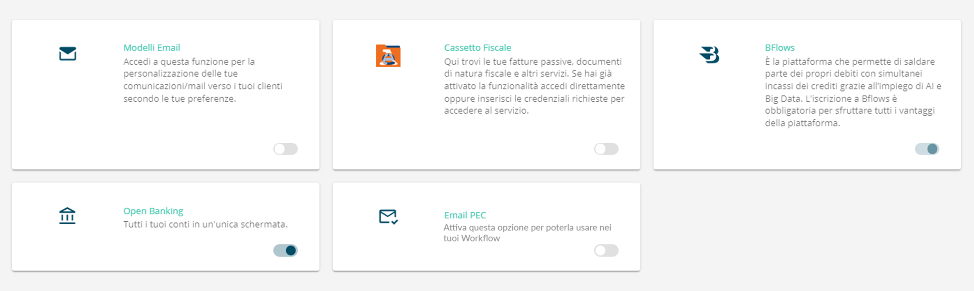 Attiva tutte le voci per beneficiare dei numerosi vantaggi della piattaforma. Verifica che il servizio Bflows sia attivo.
